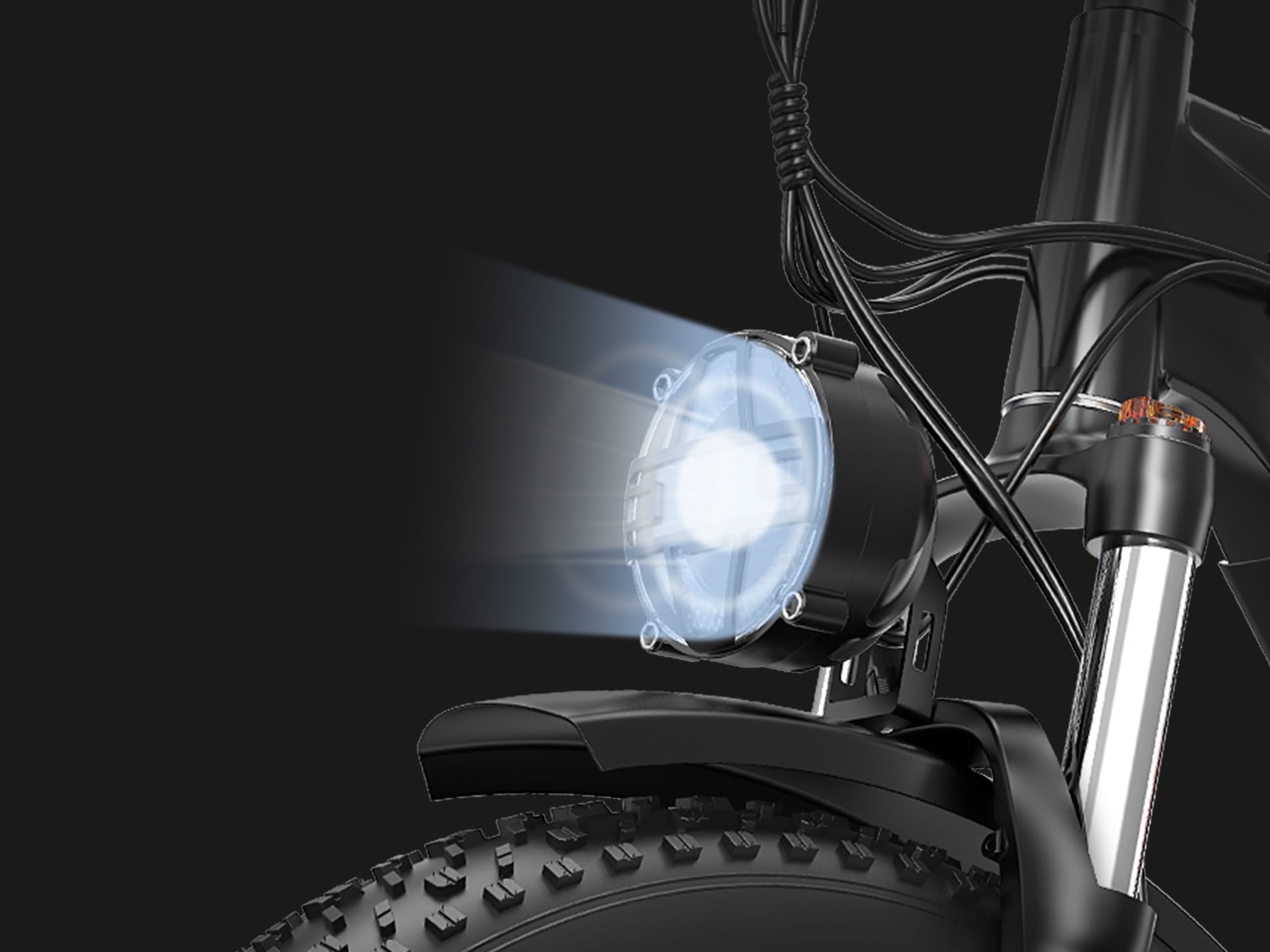 front light offers a wider illumination range and higher brightness, enhancing visibility and safety during night riding.